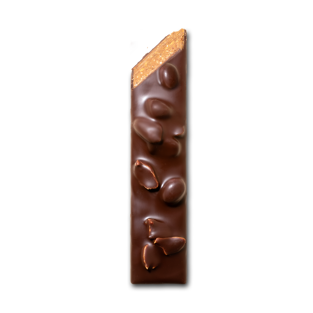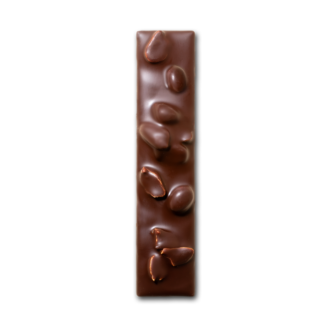 Nées sur les terres sablonneuses des landes de gascogne, entre pins et cabanes sur pilotis, les cacahuètes Tchanqué sont cultivées à Marcheprime. Elles sont doucement caramélisées avant d’être broyées, liées au beurre de cacao et enrobées soigneusement avec un chocolat transformé lentement à la meule de pierre, de la fève à la tablette, dans notre atelier du Périgord Blanc.