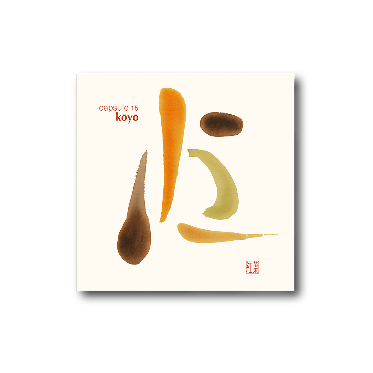 Le kōyō () célèbre la métamorphose des feuillages à l’automne, quand les érables du Japon se teintent de rouge, d’or et de cuivre. C’est un moment de contemplation, de lenteur et de lumière changeante — un temps suspendu où la nature s’enflamme avant l’hiver. Cette capsule s’inspire de cette transition : des saveurs profondes, chaudes et apaisées, comme un dernier éclat avant le silence. Lien vers la petite carte ici. Disponible en version 16 ou 32 chocolats. Choisissez "Signature" si vous souhaitez un nombre uniforme de chaque bonbon, "Sélection" pour personnaliser votre écrin – il suffira de nous laisser un petit message au moment du checkout pour définir la composition de votre assortiment 🌅
